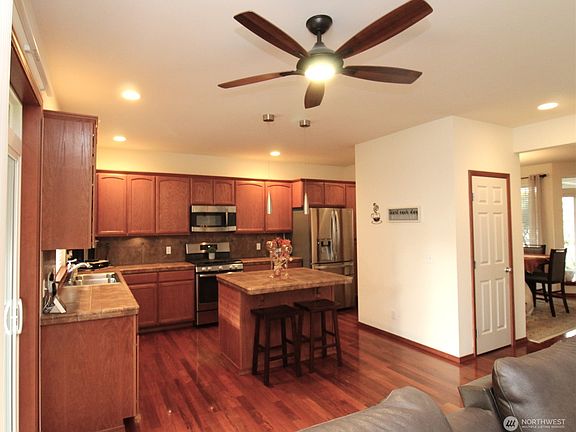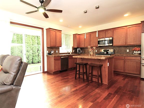 Beautiful home in desirable town of Snohomish! This 2-story custom built craftsman w/ RV parking greets you with inviting oversized porch. Relax in the chef's kitchen w/center island surrounded by upgraded SS appliances, open to a spacious family room w/gas fireplace overlooking a newly landscaped yard w/covered patio. Convenient main floor bedroom next to a ¾ bath. Upstairs enjoy a large Primary suite w/vaulted ceiling, 5 piece en-suite bathroom, w/jetted tub, double sinks & walk-in closet. And 2 more nice sized bedrooms, full bath, walk-in laundry room with W/D & sink. Large bonus/theater room. Private, fully fenced yard. RING doorbell, security system, A/C. Walk to Centennial trail, shopping, dining, & historic Snohomish. Move-In ready!!
