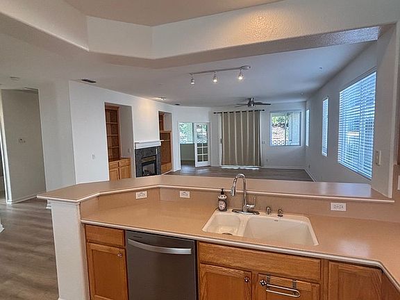 This single level 2-bedroom 2-bathroom home is in Cloverdale's Del Webb Community. It features fresh paint throughout, new flooring, A/C and an EV Charger in the garage. Through the front door and to your right is the large open kitchen which features stainless steel gas stove, microwave, dishwasher and refrigerator. There is a small dining area towards the back of the kitchen as well. The kitchen opens to the large living room with gas fireplace, built in cabinetry and access to both the back-patio area and the small office area. The first bedroom is located towards the front of the house and share a full hallway bathroom with tub/shower combo (Please note, the flooring in this bathroom is being replaced). The primary bedroom is located towards the back of the house and features a large walk-in closet and its own primary bathroom with dual vanity and separate water closet with walk-in shower. The laundry room is located just off the garage and features a wash sink with washer and dryer provided (Please note the flooring in the laundry room is being replaced). There is a beautiful cover patio area with a mature landscaping an terraced backyard. Forced heat and A/C. Attached 2-car garage with EV charger. Landscaping included. Small pet negotiable. 1 Year Lease (MT)