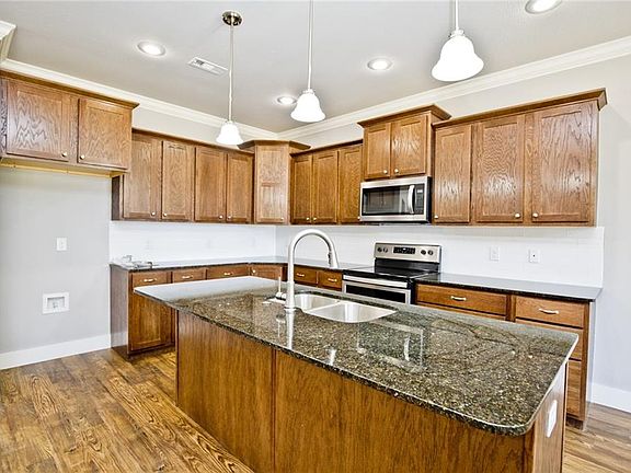 Spacious 3 bed 2 bath home in central Pea Ridge just minutes from Bentonville and Rogers. This open floor plan features hardwood tile throughout the common areas and in the kitchen enjoy granite counters and stainless steel appliances including the fridge. This home also features large carpeted bedrooms and in the master bathroom you will find plenty of storage and counter top space with dual sinks and a large walk in shower. Also included with this home is a front load Washer and Dryer! Outback lounge or BBQ on the spacious covered patio that opens up to a level spacious yard. Lawn care and landscaping is included. Yards are not fenced other than a divider fence between units. No Cats allowed, and only dogs under 30 pounds allowed with an additional $250 refundable pet deposit. This unit is apart of the Willow Run duplex community that is professionally managed.