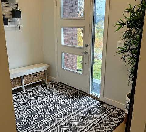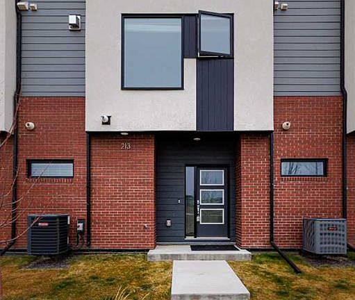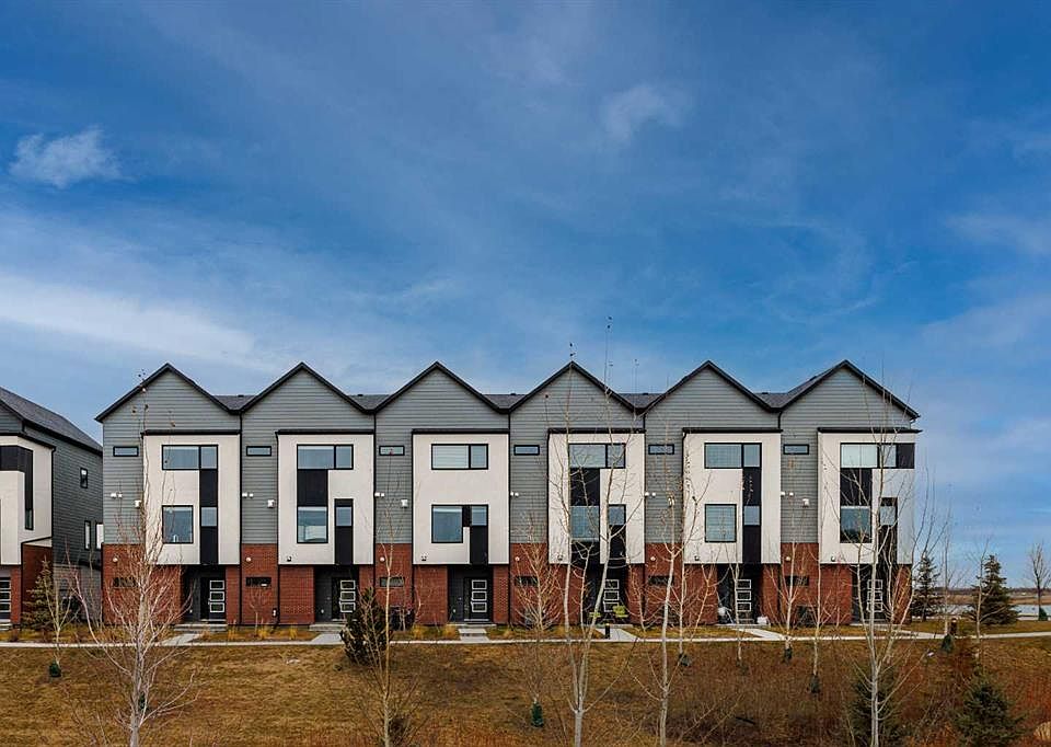 Welcome to this exquisite townhome that epitomizes the perfect blend of luxury, functionality, and natural beauty. Nestled in Harmony—an award-winning community that has proudly earned “Community of the Year – Calgary Region” eight times—this residence stands out with a plethora of upgrades, meticulous maintenance, and thoughtful design. Harmony offers an unmatched lifestyle, combining lake and golf living, walkable amenities, and stunning mountain views. As a resident, you’ll enjoy social membership at the renowned Mickelson National Golf Club, giving you access to world-class golfing right in your backyard. Families will appreciate the proximity to sought-after schools including Springbank Middle School, Springbank Community High School, and the prestigious Edge School for athletes and academics. As you step inside, you are greeted by a spacious den off the front entrance, just steps from the oversized double-car garage featuring a forward-thinking 40-amp EV connection, a true testament to modern living. Ascending to the main level, the kitchen immediately captivates with its elegant finishes—quartz countertops, a large island with breakfast bar seating, ceiling-height white cabinetry, and upgraded stainless steel appliances including a gas range for the culinary enthusiast. A massive pantry with extensive shelving ensures optimal organization. Adjacent to the kitchen is a charming eating nook with access to the front deck, where you can enjoy peaceful lake views. The sunlit living room offers a bright and inviting atmosphere, with panoramic mountain vistas framed by large windows, and a stylish fireplace with custom tile surround adding warmth and sophistication. The upper level showcases the primary suite, complete with a custom California Closet system and a spa-like ensuite featuring in-floor heating, a private water closet, standalone shower, and dual vanity. An upgraded laundry area with quartz countertop, additional shelving, and a large linen closet adds convenience. Two additional generously sized bedrooms and a 4-piece bathroom complete this floor. Outside of the home, Harmony’s amenities enrich everyday living—a 5-minute drive to Calaway Park, and the upcoming Bingham Crossing development with a future Costco and numerous shops and services. Residents also enjoy walking access to the community lake, miles of pathways, and future commercial amenities including the Nordic Spa. This townhome goes beyond ordinary, delivering a lock-and-leave lifestyle with maintenance-free living—no snow shoveling or yard work required—and four parking spots between the garage and driveway. With air conditioning, thoughtful upgrades, breathtaking surroundings, and pride of ownership throughout, this home offers not just a residence, but a lifestyle of elegance and harmony.