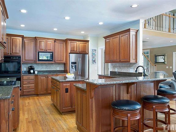 AMAZING custom all brick home. Every creature comfort so you never have to leave! 5 large beds (1st fl. guest bed) HOME THEATRE, hot tub, study, office & exercise rm. Dual fp in master bed rm/bath! Lge sunroom overlooks very PRIVATE FENCED YARD w/ BEAUTIFUL plantings, flagstone walkways, pergola & firepit. EXOTIC GRANITE just installed in all bths NEW ROOF! 3 car garage. Prestigious community w/walking trails, comm. pool and UNBEATABLE LOCATION very convenient to airport, RTP & all parts of the Triangle.