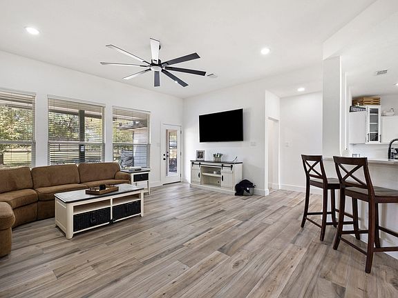Welcome to your own slice of Hill Country charm in the heart of Dripping Springs. This beautifully remodeled 6 bedroom, 3 bath home sits on a spacious 1.51 acre lot, offering the perfect blend of privacy, comfort, and upscale modern farmhouse style. Inside, you’ll find an inviting open layout filled with natural light, soaring ceilings, and new tile flooring throughout. The thoughtfully remodeled interior showcases high-end finishes and timeless character — from the elegant kitchen updates to the cozy living spaces designed for gathering. The master suite features vaulted ceilings, a luxurious modern bathroom with a quartz double vanity and new glass shower, and an oversized walk-in closet. A versatile media/playroom offers plenty of flexibility, easily serving as an additional bedroom, while the oversized laundry room with a mudbench offers extra storage and convenience. Step outside to enjoy the best of Texas Hill Country living. The large open lot is ideal for entertaining or relaxing, complete with a covered porch, stock-tank pool with a custom deck, in-ground trampoline, chicken coop, and multiple outbuildings for storage. The property also includes a spacious 3-car garage and beautiful mature trees offering shade and tranquility. Located in desirable west Dripping Springs, this home combines rural living with convenience—just minutes from local shops, restaurants, and attractions. With no HOA and room to spread out, 213 Beauchamp Rd is the perfect retreat to call home.