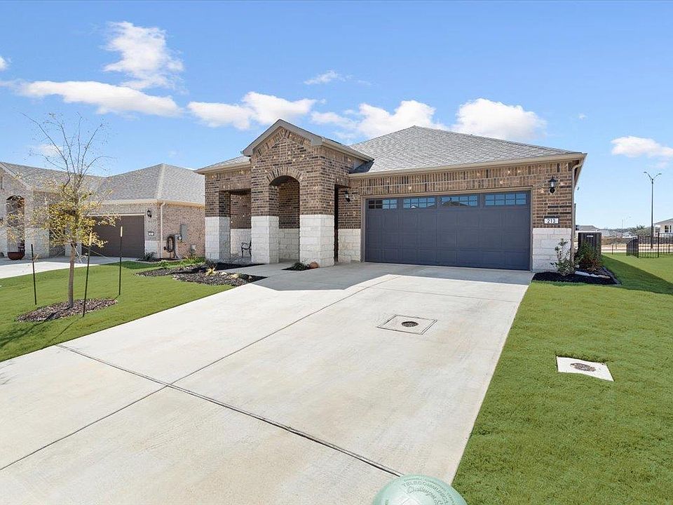 Take advantage of the opportunity to own this stunning Prestige floorplan home in Sun City. This home was built in 2023, and it has numerous upgrades throughout. The dream kitchen is open to the living room, which features a tray ceiling with crown molding and a beautifully enhanced fireplace. The 9' glass patio doors allow the natural light to create a bright and welcoming atmosphere. The primary suite features a tray ceiling with crown molding, a double vanity, a walk-in shower, and two walk-in closets. The guest bedroom comes with an ensuite bath for added privacy. Additional features include an upgraded laundry room with cabinets and a sink, an extended covered patio perfect for outdoor living, a four-foot garage extension, a durable polyaspartic garage floor coating, and a water softener. This vibrant 55+ community offers amenities including golf courses, state-of-the-art fitness centers, pools, and other recreational activities. Come enjoy an active lifestyle in a beautiful setting.