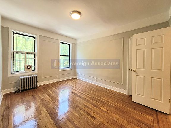 Beautiful two-bedroom in elevator building with laundry. Eat-in space in kitchen (table space: 6'7"x 2'2"). Large living room (17'8" X 11'9") accented with frame moldings and an arched entrance to drive home the charm. Two large bedrooms overlooking the small, quiet park across the street, giving you a nice green view to wake up to. The first bedroom ( 11'X14') has a single closet, and the second bedroom (10'10" X 13'11") has dual closets. The bathroom is in excellent condition. Great location as there is a small park, across the street. The A, express train and entrance to Fort Tryon Park is just up the street. The 1 Train is around the corner and there are multiple busses, grocery, and dining options. Sorry, no Dogs but fuzzy friends of the purring variety (cats) are allowed.