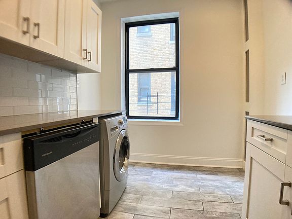 Bright Bennett Ave 1BR + In-unit Washer/Dryer! Experience roomy interiors with a touch of art decothink crown moldings, arched doorways, and hardwood floors. The kitchen boasts stainless steel appliances and a full dishwasherthe recently updated bathroom pairs with a spacious bedroom with two closets. Dimensions: Bedroom: 13.9'x11.2' Living Room: 16.6'x11.7' The central shopping area of Hudson Heights is just up the stairs with Cafe Buunnii for Ethiopian-style coffee and food, Dutch Baby Bakery that has food all day, Frank's Market for all grocery needs, Fresco's Pizza for awesome pizza, Refried Beans for Mexican food, the Tampopo Kitchen, and the long-running Kismat for Indian cuisine. Banking, pharmacy & dry cleaning services are all readily available - what else do you need? A train is less than a 5-minute walk, about 10 minutes to the 1 train - always good to have a choice in trains and busses. Courtesy listing of Bohemia Realty