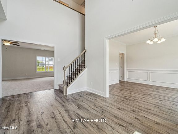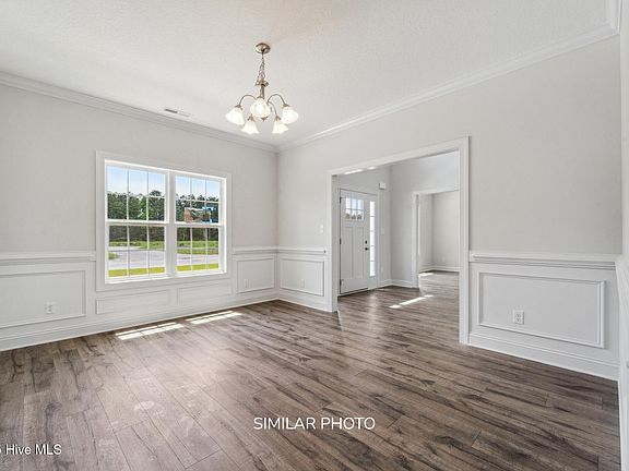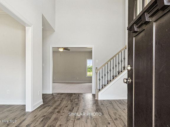 Welcome to the highly desired & popular community of Onslow Bay. Brand new construction built by Onslow County's most trusted & preferred builder. Onslow Bay is a hot spot, 3 miles to MCB Camp Lejeune's Piney Green gate, 14 miles to New River Air Station & minutes to area schools, shopping & dining. This beautiful neighborhood is sure to impress, complete with a clubhouse area & community pool. Welcome to the Haley. 4 bedroom/2.5 bath, approx. 3350 heated square feet. This big, beautiful floor plan boasts a charming & stately front porch. Enter a grand 2-story foyer illuminated by natural light. Ideal formal areas, dining room & formal living room. Wide open space from the gorgeous kitchen, keeping room, breakfast area & family room. The kitchen is sure to impress with staggered flat panel cabinets & an island for extra seating. Stainless steel appliances include a smooth top range, microwave & dishwasher. The cozy keeping room sets the mood featuring a fireplace with a custom mantel. Enjoy your morning coffee on the 16 x 10 covered back porch. Up the alluring staircase to a massive 17 x 14 master suite featuring an adorable sitting area. Master suite also features a luxurious master bath with double vanity, separate tub, shower, toilet & linen closet. Huge 11 x 13 walk-in closet. Bedrooms 2, 3, & 4 have generous closet space & all are prewired for ceiling fans. Bedroom four also opens to the hall bath. 2nd floor laundry. 2-car garage. The Haley is a must-see plan. Call today. NOTE: Floor plan renderings are similar and solely representational. Measurements, elevations, and specs may vary in final construction. Limited selections for buyer to choose. Call L/A to verify.