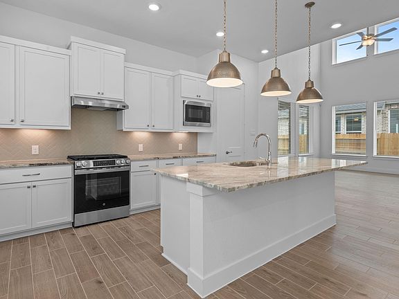 This home is Move-In Ready Now! The Effortlessly, Luxurious Medina Plan houses 4 Bedrooms (2 Down & 2 Up), 3 Bathrooms, Game Room, Media Room & Extended, Massive Covered Outdoor Living Space + 2 Car Garage! The Wide-open Great Space includes the Gourmet Quartz Island Kitchen, Spacious Casual Dining and Two-story Family Room. Private Downstairs Primary Bedroom offers Retreat Bath w/ Dual Vanities, Soaking Tub, Walk-in Shower w/ Bench + Texas-sized Closet. Upstairs offers a Media Room, Game Room overlooking Family Room, 2 Bedrooms with Jack-N-Jill Bath. Iron Spindled Stairway, Stainless Steel Appliances, Upgraded Tile Flooring, Security System, Gutters on the front Gutters 2", Sprinkler System, Fully Sodded Yard + Landscaping Pkg all included & Blinds!