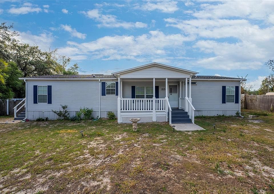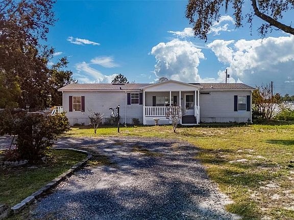 NO HOA, NO CDD, DOUBLE LOT! This charming double wide manufactured home is located on a half acre with an additional .24 rear second parcel perfect for gardening, farm life or family gatherings. This home offers 3 bedrooms, 2 bathrooms, and a Dining Room / Living Room combo. The updated kitchen is equipped with new cabinets and countertop, ceramic tiles, range and refrigerator. The Primary Bedroom includes an en suite bathroom with a antique clawfoot bathtub and a separate shower. Additional upgrades includes a newly built front porch, water filtration system, rain gutters, new electric water heater, new roof in 2022, and a new A/C in 2021. Centrally located near shopping centers and most theme parks.