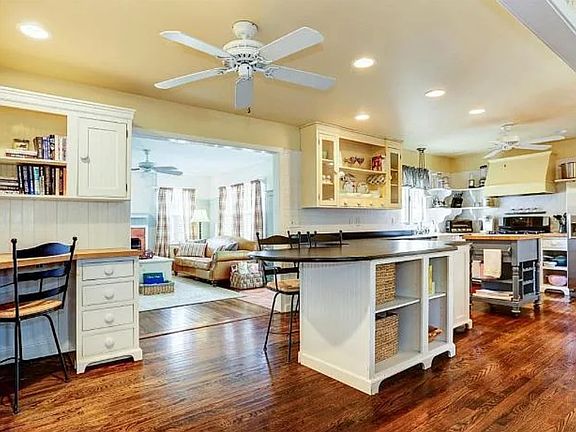 Dining room with fireplaceEat-in islandUpdated granite kitchen