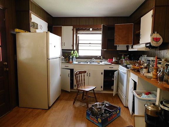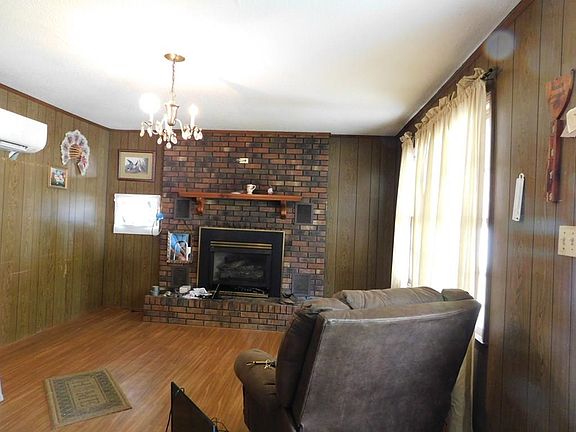 This brick home comes with 3.93 acres of land which extends to creek at very back, a block building & a shop (2 bldgs.), multiple carport sheds. Basement level could be a second dwelling and it has a partial 2nd kitchen. 2 fireplaces, vinyl flooring, laundry on screened back porch. Great fixer upper. Fenced front yard. Possible separate living quarters in basement with wood burning fireplace & kitchen area. Motivated seller. Selling as-is