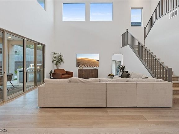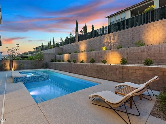 Located in the gated community of Carmel Cliff in Summerlin West, this 7 bedroom, 6 bath residence offers over 4,000 sqft of modern living. The open-concept layout features a gourmet kitchen with oversized island, quartz countertops, and premium appliances. The primary suite provides a private retreat with spa-inspired bath, dual walk-in closets, and custom California Closets. Six additional bedrooms allow flexibility for family, guests, home offices, or gym. Enjoy resort-style outdoor living with a pool, spa, fire pit, and covered patio- ideal for both entertaining, and everyday relaxation. Smart home technology, designer finishes, and a 3-car garage add convenience and style. Close to top-rated schools, nearby parks, Red Rock Canyon, golf courses, shopping, and dining. This home blends space, luxury, and location for the ultimate lifestyle!