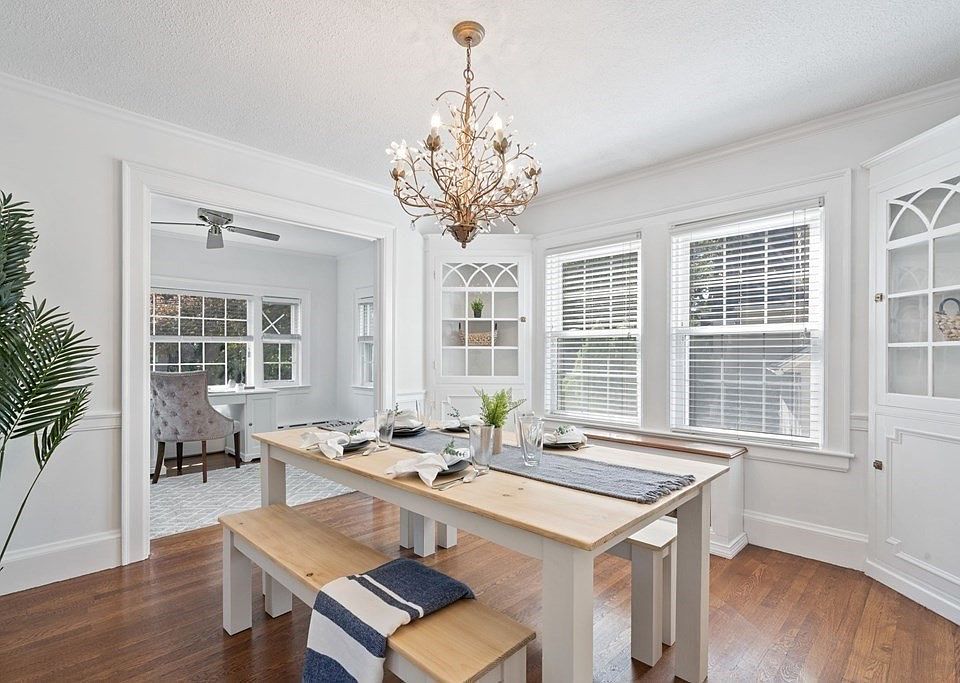 Perfectly located home w/ three full bedrooms plus additional office & attached garage parking, all just a super quick walk to the Endicott Commuter Rail. Main living level offers open floor plan between dining & living room w/ fireplace and custom built in bookshelves & cabinets. Eat in kitchen w/ pantry & access to large wrap around porch. Adjacent, sunny, window wrapped office area on this floor too. 2nd floor has 3 spacious bedrooms, plus super convenient full laundry room (easily converted to master bathroom if desired). Also on this floor are 2 outdoor terraces. Lower level has semi-finished basement, 1/2 bathroom & direct access to attached garage parking space. Outdoor, detached garage could be used as 2nd garage spot or large shed/workshop. NEW garage door, energy efficient boiler, deck, insulation and more! Perfectly situated between center of town & Legacy Place, walking distance to Endicott Estates & local elementary school. Truly a great opportunity in a fantastic town!