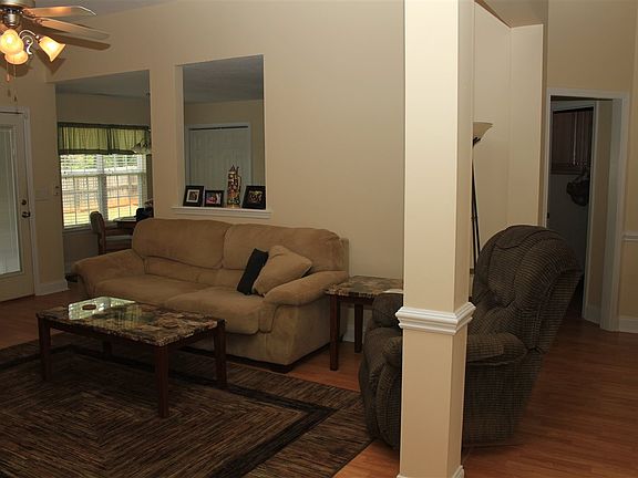 Corner lot with big privacy fenced backyard. Laminate flooring throughout, tile in laundry & baths, new carpet in master. Big pantry in the kitchen. Master suite has sitting area, double vanity, garden tub, sep shower & walk-in closet. Rocking chair front porch, screened back porch, gutters, alarm system, 2" blinds.