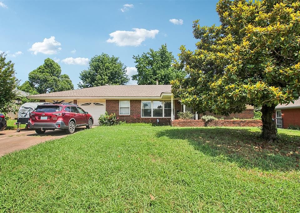 Welcome to 213 Country Club Terrace in Oklahoma City. This three-bedroom, two-bathroom brick, ranch home offers a functional layout with flexible space to fit a variety of needs. The home opens into a central living room that leads to a dedicated dining area with built-in storage. The kitchen features abundant cherry wood cabinetry. From the kitchen, access the two-car garage with laundry hookups or step into a flex room that could serve as a second living area, office, or third bedroom, complete with closet and access to the oversized backyard. Two additional bedrooms, including a primary with en suite bathroom, offer comfortable living. The backyard is fully fenced with mature trees along the property line for added privacy. A wide driveway and a front yard anchored by a beautiful magnolia tree complete the exterior. This home offers a practical layout and solid potential in an established neighborhood. Schedule your showing today!