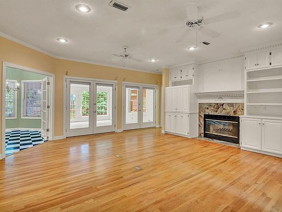 This brick home is located at the end of a wooded cul-de-sac in Gateway Estates. Upon entering the front door, you will find a large grandroom with built in cabinets on the one wall with a wood-burning fireplace with marble surround, hardwood floors, recessed lighting, and ceiling fan. The formal dining room boasts an antique chandelier that does remain and doors going to kitchen with lots of cabinets, and the bottom ones have drawers, and most top cabinets have glass front doors. You don't need to worry about cooking those big family dinners as the kitchen has a wall oven and a drop in range with another oven and smooth surface top, as well as the usual dishwasher and garbage disposal. Also features a side by side refrigerator/freezer with water dispenser on the door. There are also two pantries in the kitchen as well as a desk area, and the countertops are granite. From there you can either go through a little hallway to the laundry room and master bedroom, or to the Florida room that is oversized and heated and cooled. Also features recessed lighting, ceiling fan and goes to wet bar off the side. Master bedroom is awesome in that it is 17 x 35 in size with hardwood floors, electric remote controlled fireplace at the end, and plenty of room for a sitting area as well or in addition to office space. For the woman of the house, you have your own sit down area vanity area with lots of mirrors and cabinet storage, as well as a large walk-in closet and separate water closet with a transom window. The man of the house has a walk-in shower, jacuzzi, walk-in closet and separate water closet on his side. What a treat!! The side entry garage features two doors and has a laundry sink right at the kitchen door, and separate workshop/storage area off the side. Last but not least, there is a 30' wide Quonset shed with a drive up in the back corner of the privacy fence and it features two small office spaces that are separate from the storage for the lawn mower.