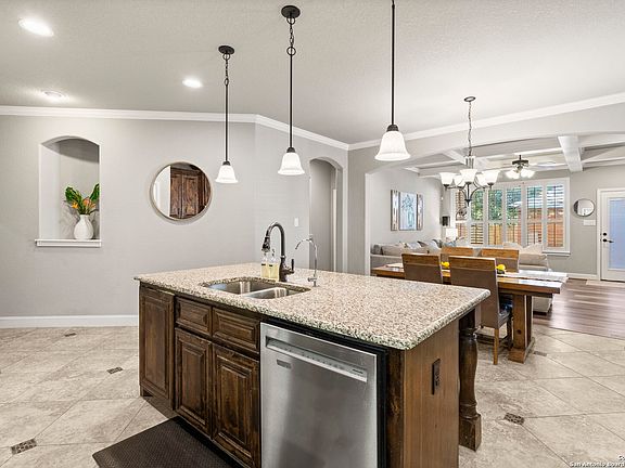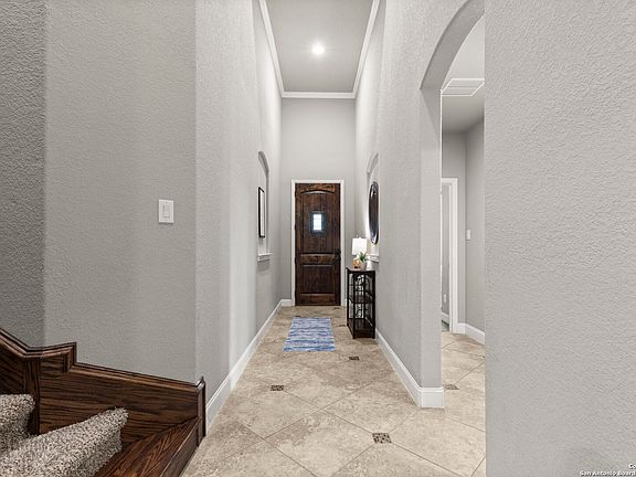 SADDLEHORN - BOERNE: Absolutely Gorgeous! 3 Bed, 3 Bath, Open Floor Plan with Plenty of Upgrades; Large Island Kitchen, Granite Countertops, Stainless Appliances, Coffered Family Room Ceiling, Tray Ceiling in Master, Knotty Alder Cabinetry, Crown Molding, Game Room with Full Bath, Upgraded Tile Throughout, Jacuzzie Tub in Master, Custom Plantation Shutters, In-Wall Pest Control, Keyless Front Entry, Designer Master Bath Cabinetry with Marble, Security, Sprinkler, Covered Patio, Enjoy enhanced privacy with a small greenbelt behind the home-no shared back fence with neighbors and much more. BOERNE ISD!