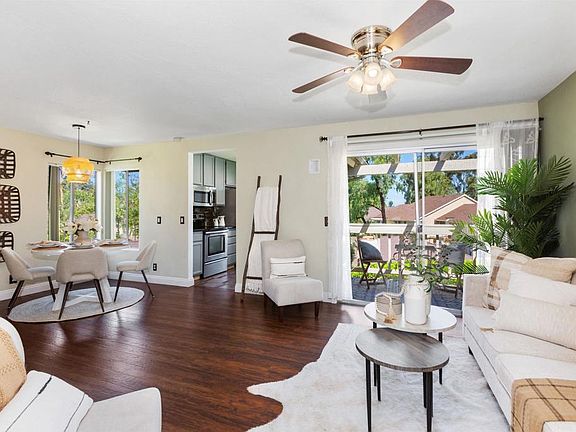 Welcome to this bright and inviting 2-bed, 2-bath condo located in The Park community of Vista. An upper-level corner location provides an abundance of natural light and views of the surrounding hills. The Mediterranean-inspired kitchen boasts granite countertops and stainless steel appliances. The primary suite features sliding barn doors, an upgraded shower and both bathrooms have been updated with modern fixtures. Adding to the home's convenience is the in-unit laundry with a full-size washer & dryer. The spacious deck is perfect for relaxing and enjoying the views. Parking includes a private detached 1-car garage, an additional designated space plus a visitor's lot for guests. Community amenities include a pool, fitness center, dog park, tennis courts, and tranquil walking paths. Conveniently located just 10 minutes from Carlsbad beaches, Lake Calavera Preserve, Buena Vista Park, and a variety of hiking trails. Hwy 78 is also nearby, providing easy access to other major highways. This home offers the perfect blend of suburban calm and urban accessibility.