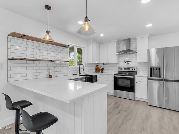 The inviting layout offers a seamless flow between the spacious living areas and the light and modern kitchen design with open cabinetry, SS appliances and white subway tile, creating a great entertaining home! The primary bedroom provides a peaceful retreat with a full bathroom with spa hardware, complemented by well-appointed secondary bedrooms.