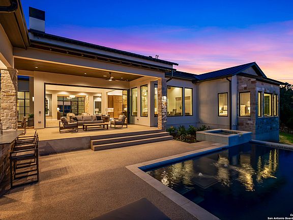 Exquisite Custom-Built Home by Vogel Builders Experience the pinnacle of ultra-luxury living combined with functional design in this newly constructed 5,383 sq ft single-story masterpiece by the renowned Vogel Builders. Nestled within a prestigious guarded and gated community of Adeline at George's Ranch in Boerne, at the heart of the Texas Hill Country, this estate offers both privacy and exclusivity. Residents will soon enjoy access to a state-of-the-art community center and gym, enhancing the upscale lifestyle this neighborhood affords. Property Highlights: * Bedrooms & Bathrooms: Four generously sized bedrooms, three full baths, and two half baths. * Primary Suite: A sanctuary featuring separate his and her closets with a dedicated shoe room. The en-suite bath boasts dual vanities, a soaking tub, and an expansive shower equipped with multiple showerheads-including a rain shower-all accentuated by bespoke lighting. Enjoy serene ranch views directly from the suite. * Gourmet Kitchen: An entertainer's dream, this chef's kitchen features a massive island with seating and ample storage, top-of-the-line appliances, and a convenient pot filler. The adjacent dining area offers panoramic views of the ranch and pool, creating an exquisite dining experience. * Living & Entertainment Areas: Designed with soaring ceilings and custom sliding doors that fully retract, seamlessly connecting the living room and the game/entertainment room to the outdoor living spaces. A dual-sided fireplace elegantly serves both the living area and a secondary patio seating space. * Wine Room: A connoisseur's delight complete with custom built-ins, a tasting table, and dual coolers-perfect for hosting intimate gatherings. * Guest Suite: A spacious en-suite bedroom equipped with a kitchenette and a custom no-step-in shower, offering comfort and privacy for guests. * Additional Amenities: * An entertainer's dream room featuring imported custom brick from floor to ceiling, an elevated pool table, and a unique hobbit/children's entertainment space beneath. * A mudroom/drop zone, pantry, and a vast utility room featuring a dog wash station. * Modern comforts including spray foam insulation throughout for enhanced energy efficiency, built-in pest control, and tankless water heaters for optimal performance. Outdoor Oasis: * Backyard: A true retreat with multiple decks adorned with custom flooring, various seating areas, a faux infinity pool, hot tub spa, and an outdoor kitchen complete with a fireplace and water feature, situated adjacent to a sophisticated home office. * Recreational Space: Ample room to accommodate a sport court, pickleball court, or soccer field-catering to diverse recreational pursuits. * Landscaping & Exterior: Meticulously designed landscapes elevate the home's elegance and functionality. The property is crowned with a durable metal roof and enclosed by wrought iron (rot iron) fencing, providing both security and a refined aesthetic. Community & Education: Situated within the esteemed Boerne Independent School District, residents benefit from access to top-tier educational institutions. The community's guarded and gated entrance ensures security and peace of mind, while the forthcoming community center and gym promise enhanced lifestyle amenities. Discover the epitome of luxury and functionality in this exceptional property crafted by Vogel Builders. Schedule your private viewing or come by and see us in this years 2025 Parade Of Homes May 17th-May26th and experience this unparalleled estate firsthand.