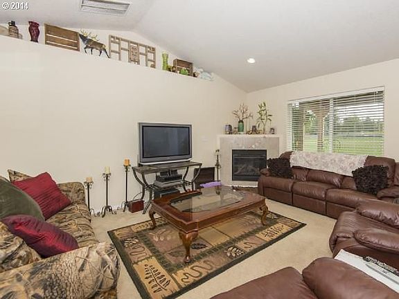 Open and Inviting is what define this wonderful one-level home right in the heart of Molalla. Spacious kitchen that flows into large vaulted ceiling great room w/gas fireplace. Lovely master suite with walk in closet and vaulted ceiling. Covered outside sitting area with Lg storage shed. Office could be 4th Bedroom. Great side yard for kids or pets. Private access to large park right behind home. Close to Shopping and Restaurants.