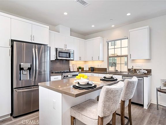 Welcome to 213 Elkhorn! Tucked away in the foothills of the Portola Springs in Irvine is this Brisa Plan 1 condo offering luxury vinyl flooring throughout, a naturally well lit great room, kitchen with grey quartz counters, white shaker cabinets, stainless steel appliances, and island with counter seating that opens up into the living and dining areas. Upstairs, you'll find two en-suites including a spacious primary bath with walk-in closet, dual sinks, and tiled shower. Other notable features include private balcony off the dining room, upstairs laundry with washer and dryer included, 2 car attached garage with direct access, tankless water heater, high ceilings, recessed lights throughout, whole house fan, and custom shades. The Village of Portola Springs offers an array of resort style amenities including Olympic and Jr Olympic pools, clubhouses, sports courts, tennis courts, beach volleyball courts, parks, tot lots, walking/biking trails, and much more! Located at the top of Portola Springs, within walking distance to Loma Ridge Elementary, Portola Springs Community Park, just minutes from Woodbury Town Center and Irvine Spectrum, and a short drive to Laguna Beach and John Wayne Airport.