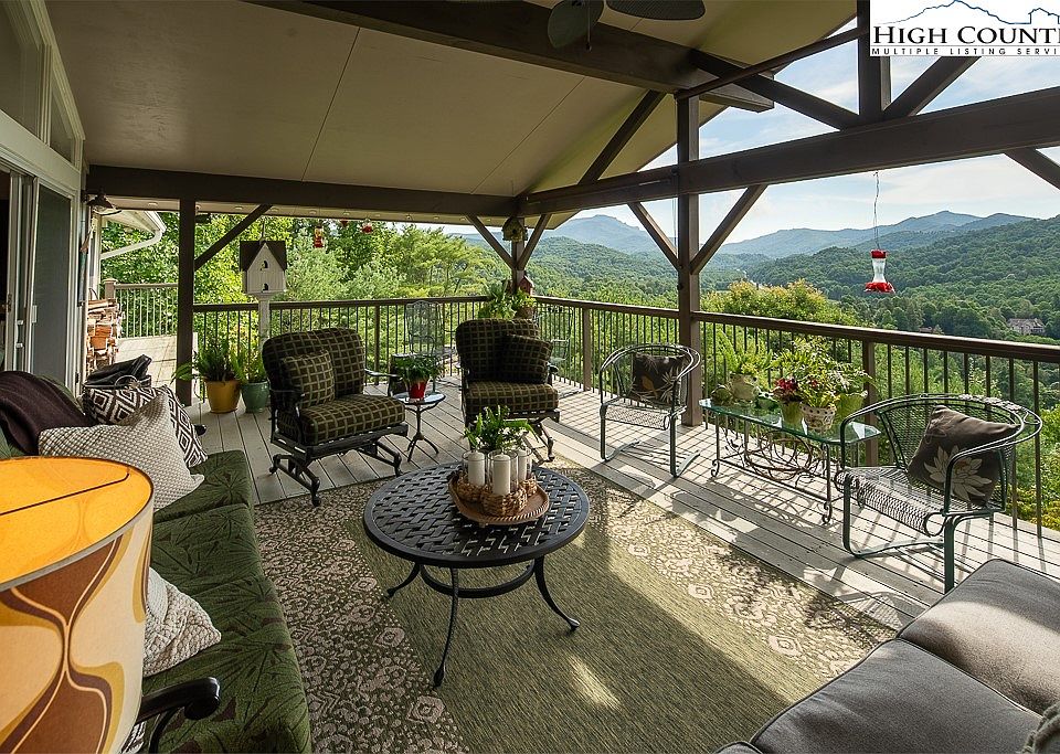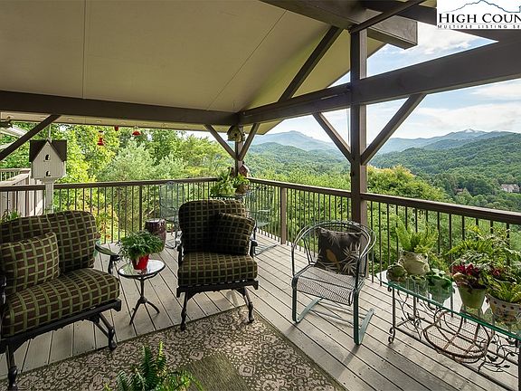 Spectacular view of Grandfather, Hound Ears Golf Course and the surrounding mountains. This home features a large covered porch and level entry living. The Master bedroom, Living, dinning and kitchen are all accessible with is just one step into the main floor. Below are three additional bedrooms, two baths and a second living area to enjoy. This home will not last long. Furniture is Negotiable at an additional price. Hound Ears Club is a gated community centrally located between Blowing Rock, Boone and Banner Elk. Memberships are available for purchase and include fine/casual dining, golf, tennis, fitness center, swimming pool with rock waterfall and grill onsite with drinks and dining options. As a homeowner enjoy hiking trails, community garden, Grover's Dog Park.