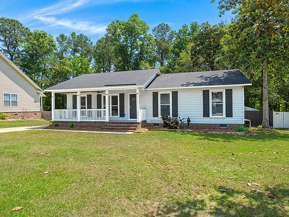 Home is where the heart is and in this case that's 213 Elm Street at this adorable ranch home. Sitting in the center of Moncks Corner with No HOA and just 10 minutes to the public boat landing on Lake Moultrie. You are not going to want to miss out on this one. The curb appeal is just one of the many reasons why this home is one to see. Walking through the front door you will notice the luxury vinyl plank flooring throughout and nice spacious living room. A gorgeous brick gas fireplace will come in handy come winter time and gives off a relaxing ambiance. The owners added the perfect touch of shiplap to the dinning room and throughout the home to make you swoon.The updated light fixtures go perfect with all of the updates in the home. Tile flooring in both full baths and a new upgraded tile shower in the owners suit is just what this home needed to take it to the next level. The backyard screams potential. The oversized yard has plenty of space to put in a pool or even build a garage although storage is not an issue with the attached back house and multiple sheds that convey. Backing up to the woods serves for ultimate privacy and the paver patio is great for hosting outdoor bbq's or relaxing on the weekends. There is an additional concrete slab for another shed or parking trailers, boats, etc. This home is checking all the right boxes at a great price. Don't miss out!