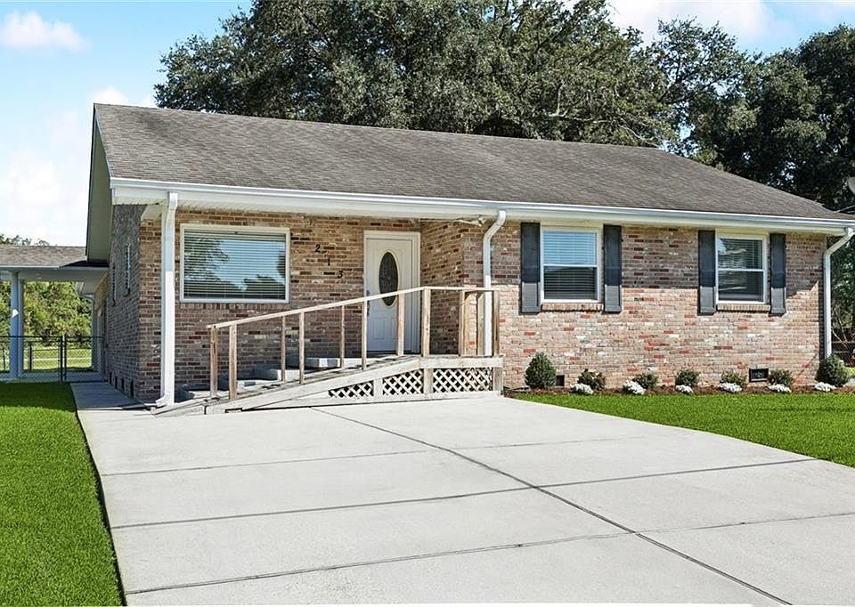 Charming Belle Chasse home nestled on a generous corner lot surrounded by a quiet wooded setting! The front portion features a living room, cozy dining area, and kitchen, with a hallway leading to a full bathroom with a large accessible shower, three bedrooms, and one bedroom with its own private bath. The rear section includes a living area, kitchen, flex space, hallway with half bathroom, and a master suite with a full bathroom that flows into a convenient laundry room. This property offers privacy and a serene outdoor space in a small neighborhood with more space than meets the eye. Move in ready with a rustic and modern feel!