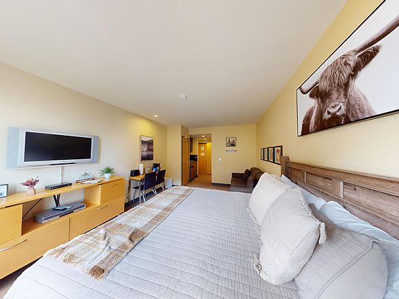 Expedition Station Studio on the slopes and in The Village of Snowshoe. This unit has a king bed already and a sleeper sofa so it sleeps four. It also has kitchenette with a two burner stove, sink, microwave, coffee maker, toaster and a large than normal refrigerator for these places. Great location with easy access to all. Expedition Station also has coin laundry, a workout area and ski lockers....but best of all you walk out the door and ski away. Check out all of the photos and virtual tours.