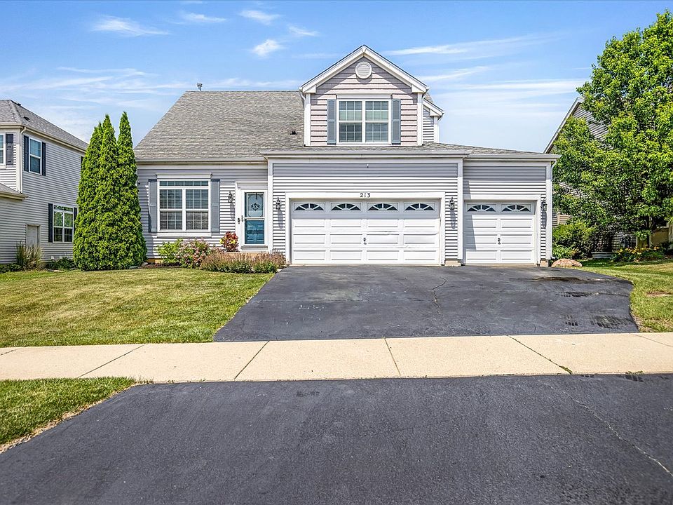 Welcome to 213 Fieldstone - a beautifully maintained 3-bedroom, 2.5-bath home with numerous upgrades and a spacious 3-car garage, located in a sought-after Woodstock neighborhood. Step inside to find a freshly updated kitchen featuring sleek new granite countertops, an upgraded sink, and a full suite of stainless steel appliances (2021) including a stove, refrigerator, dishwasher, and microwave. The main level offers hardwood flooring throughout, adding warmth and character to the space. Major updates include a new furnace, new water heater, new washer, and a new sump pump with battery backup. The home is also equipped with a 200-amp electrical service and durable Hardie board siding. The full unfinished basement includes a sprinkler system and is roughed in for a future bathroom-offering excellent potential for additional living space. Laundry is conveniently located upstairs, with washer and dryer included. Enjoy the outdoors with new hardscaping and a backyard storage shed for added functionality. Move-in ready and packed with thoughtful upgrades, this home offers comfort, convenience, and long-term value. Schedule your showing today!