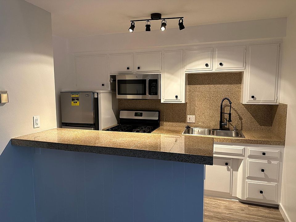 PLEASE READ ENTIRE AD! El Porto, Manhattan Beach 1 bedroom, 1 bath, with private parking for 1 car, West of Highland, Remodeled building and unit, vinyl planked flooring throughout with an Open floor plan with fireplace and newer windows, recessed LED dimmable lights, kitchen with granite bar eat-in area with granite counters and back splash, Stainless Steel Refrig, stove, microwave, disposal, two tone paint throughout, newer blinds, bathroom with newer vanity with granite counter, stall shower, modern elect., mirrored closets, lots of storage, restaurants, parks, shops, malls, top-golf and golf courses, markets, banks, high end retail shops, freeway close and much more. El Segundo, LAX, Silicon Beach, Playa del Rey, Marina del Rey, Hermosa Beach, Redondo close by. Deposit equal to rent, Pet ok with extra deposit. To protect both of us from fraud, we do not accept TEXT or EMAILS, so please call to discuss between 9-5. We seek long-term tenant 12 + months, shown by apt. $2,695. month. Thank you!