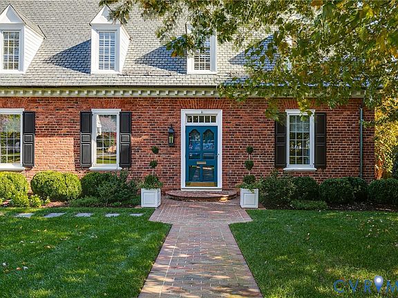 This brick and slate Richmond classic in desirable Windsor Farms is beautifully renovated and move-in ready. This elegant home showcases exquisite millwork, designer lighting, and curated finishes throughout. The gracious entry foyer opens to a large living room with a gas log fireplace and a spacious dining room with a bay window. The stunning 2021 kitchen renovation features inset custom cabinetry, marble countertops, a large center island, designer fixtures, and a walk-in pantry. The sunroom, surrounded by windows offers French doors out to the terrace and pool beyond. There is a family friendly mudroom and a first floor powder room. Upstairs offers four spacious bedrooms and four full baths, including a luxurious primary suite with two walk-in closets, custom built-ins, and a beautifully renovated bath. The wonderful outdoor spaces offer a large brick terrace overlooking the sparkling pool, with a new pool cover. The recently re-designed, professionally landscaped grounds by Greenway Gardens are a private oasis and have a large flat green space for play. The dry basement includes a generous family room with fireplace and built-ins, plus a renovated laundry room. A cobblestone-lined driveway leads to the attached garage with automatic door, while the new front brick walk and custom storm door enhance the charming curb appeal. Thoughtfully updated inside and out with designer touches, this Windsor Farms gem perfectly blends classic architecture with sophisticated modern living.