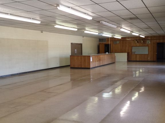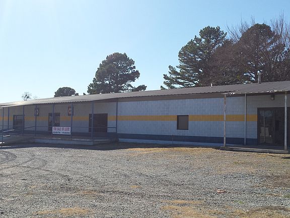 Commercial Building sitting on 8 lots across from new building construction of grocery store/restaurant/gas pumps. Central heat/air, loading dock/ ramp, office space with attached separate building and half bath (potential rental space). Building measures 120x60. Built to last construction. Good potential for any type of business.
