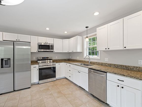 Welcome to your charming 2 bedroom, 1 bathroom ranch nestled on 4.7 acres in desirable Derry, NH. Kitchen has been updated with new stainless steel appliances and also has granite countertops, white shaker cabinets, and a pantry. Bathroom has been updated to include a dual vanity and also has an ample closet for linens and more! First floor bedrooms have plenty of closet space, lots of natural light, fresh carpet and fresh paint! This open concept ranch allows ample space for entertainment and lots of natural light. You will also love the first floor laundry space at the end of the hall. This lovely home boasts a finished walk-out basement, perfect for extra living space, an office, a playroom, or even a possible bedroom. Paved driveway allows plenty of space for ample parking! You won’t want to miss the stamped concrete stone wall upon entry to the paved walkways with your choice of two entrances to the home! Come enjoy the peace and privacy of your expansive 4.7 acre property while still being conveniently located near town amenities, next to Ballard State Forest, and close proximity to trails. Don't miss your opportunity to make this delightful ranch and expansive yard your own! Offer Deadline of Saturday 5/20/23 at 4:30pm.