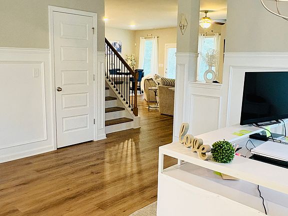 Welcome to this beautifully crafted 5 bedroom, 3 bathroom home built in 2024 and located in the sought after, newly developed Flakes Mill community. Nestled on a generous 0.41-acre lot, this stunning residence offers a blend of modern design, functional space and peaceful natural surroundings. Step into a bright, open-concept main floor that seamlessly connects the living area, dining room and a versatile flex space perfect for home office or additional sitting area. The guest bedroom and full bathroom on the main level provide convenience and comfort for visitors or multi-generational living. Upstairs, you'll find four spacious bedrooms, including a luxurious master suite featuring a large sitting area, ideal for relaxing. The upper level also includes a dedicated laundry room for added ease. Enjoy the privacy of a wooded backyard with no rear neighbors perfect for outdoor entertaining. Don't miss your chance to live in one of the areas most up and coming neighborhoods with modern construction and thoughtful layout.