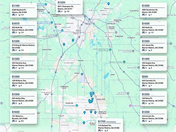Expand your rental real estate portfolio with this 18-unit rental portfolio in Macon and Warner Robins that consists of 16 single family homes and one duplex. The rental income is currently producing $22,275 a month ($267,300 annual) with annual estimated taxes of $17,530 and annual insurance of $10,781. Great news is that 16 of 18 units currently rented out with long-term tenants. The 2 current vacant units are being updated and will be rent ready soon. Two units in portfolio have section-8 approved tenants. Homes are all in average to above-average condition with very little deferred maintenance. This is a great portfolio for any real estate investor looking to expand their portfolio quickly. No seller financing as owner looking to 1031 exchange.