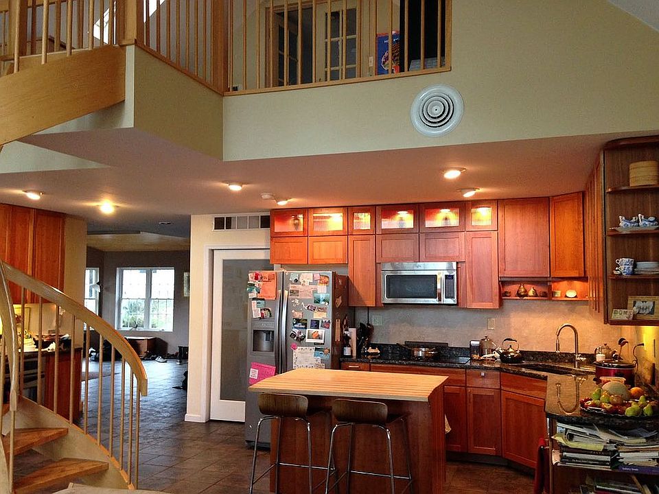 Lovely sunlit contemporary waterfront property with detatched guesthouse. Main house has a custom oak staircase to loft and inside french doors, 20 x 20 bedroom on second floor. Open concept with cherry/granite/stainless kitchen and all the bells and whistles. The front room has a natural gas fireplace. Radiant heat throughout. A beautiful bricked walkway and firepit patio lead from the deck to the dock (included!). 2022 6 person Caldera Spa hot tub with new lift and cover off back deck. Detached guesthouse with two bedrooms and two garage bays has forced air heat.