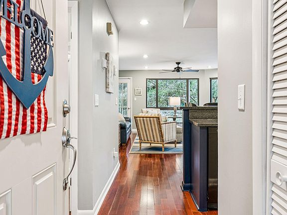 Welcome to 213 Little Oak Villas, a serene, gated community just over the bridge from Folly Beach, offering a peaceful neighborhood atmosphere with exceptional amenities. This 2-bedroom, 2-bath Villa lives comfortably with an open layout and a beautiful natural backdrop. The expanded kitchen features an oversized island, extended cabinetry, and generous seating--perfect for entertaining with effortless flow into the living area. A wall of windows fills the space with natural light while showcasing views of the wooded lagoon, home to a variety of birds and wildlife. Step out to the screened porch to unwind and enjoy the setting, or head down the private stair access to explore the grounds.The primary suite also opens to the porch and includes a walk-through closet leading to an updated bathroom with an oversized ceramic tile shower. The secondary bedroom is tucked on the opposite side of the villa for privacy, with its own full bath nearby. Little Oak Villas offers true low-maintenance living HOA dues cover insurance, exterior maintenance, and landscaping. Community amenities include a swimming pool, tennis and bocce courts, riverfront gazebo, walking trails, and secured gated entry. If you're looking for a Folly Beach retreat just outside the hustle and bustle of the island but close enough to enjoy it all, 213 Little Oak Villas is the ideal place to call home.