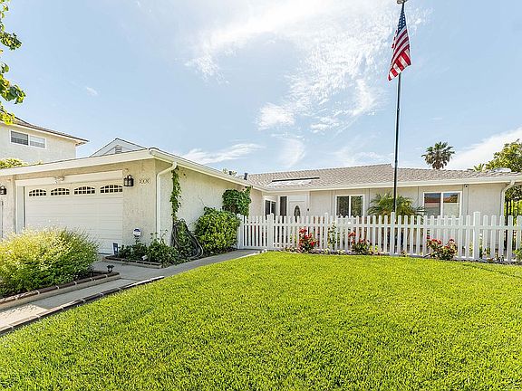 Tranquil Gardens, white picket fence and large front porch welcome you to this exceptional SINGLE STORY home featuring 1870 square feet of open concept living space. Enjoy cooking in the remodeled kitchen with updated cabinetry, quartz countertops, stainless steel appliances, walk-in pantry and spacious peninsula that comfortably sits 4 people plus a generous breakfast nook open to the family room featuring wood beam vaulted ceilings. Adjacent is the Formal Living Room with newly remodeled fireplace hearth and Large Formal Dining Room perfect for hosting large dinner parties. Enjoy wood-like flooring in kitchen, family, dining and living rooms. Recent Upgrades include newer electrical panel (2015), newer furnace (2018) and AC (2020) with wifi thermostat, newer ducting & insulation (2018), newer water heater (2020) and updated guest bathroom. Relax in the lovely backyard with covered and open patios, grassy space, above ground spa and colorful flowering gardens. Large side yard can accommodate RV or Boat and more. Interior Laundry Area, Epoxy Garage Floors, Rachio Smart Sprinkler System, Dual-Paned Windows, avocado, orange and pomegranate fruit trees and so much more. Washer, dryer, kitchen fridge, spa and shed included. Fabulous Park and playground nearby. Easy access to shopping, dining and 101.