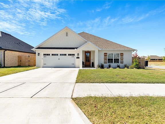 Looking for your first home but don’t want to sacrifice style? This modern 3-bedroom, 2-bath beauty checks all the boxes — and then some! Less than a year old and packed with upgrades, it sits on a spacious corner lot and offers 1,843 sq. ft. of open-concept living. The heart of the home features a large stained quartz island that ties together the kitchen, dining, and living areas — complete with custom wood beams, a vent hood accented in alder, and a cozy gas fireplace with matching wood details. The primary suite feels like a retreat with a tiled shower and bench seat, soaking tub, and walk-in closet. The split floor plan provides privacy while two extra bedrooms share a stylish bath. The walkout leads to a covered patio with a TV outlet and a fenced backyard. Extras include a large pantry, custom cabinetry in the utility room, cedar shutters, a custom garage door with windows, and full gutters. Move-in ready and designed for easy, modern living!