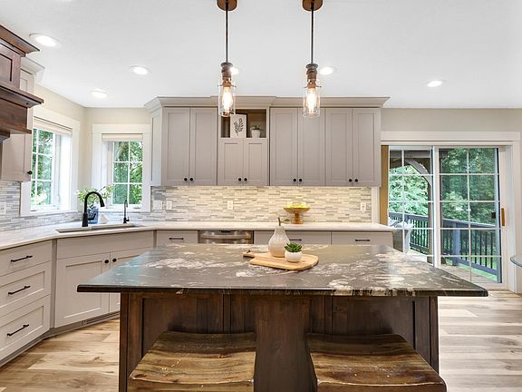 Step inside this beautifully updated home where style, comfort, and function all come together. The heart of the home is the top-of-the-line kitchen, showcasing custom cabinetry, stainless appliances, a statement hood over the range, tile backsplash, and a stunning soapstone island complemented by quartz perimeter countertops that are perfect for cooking and gathering.