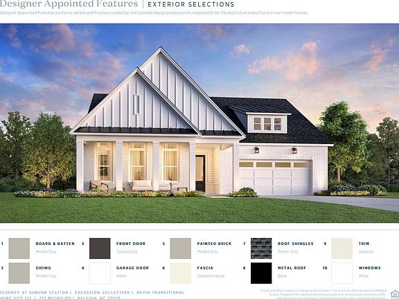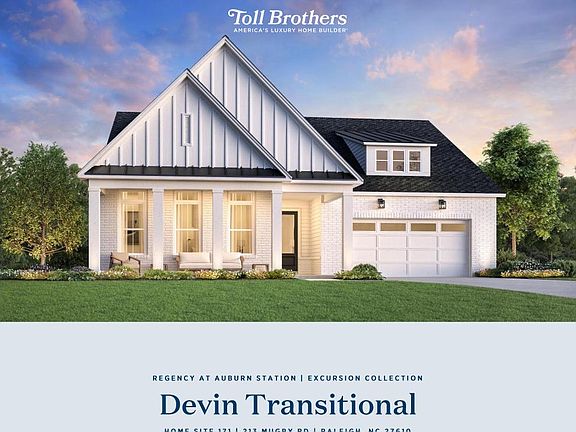 This stunning Devin Transitional model is part of the highly sought-after Excursion Collection at Regency at Auburn Station, a premier 55+ active adult community located in the heart of Raleigh, NC. Designed for comfort and versatility, this home boasts a well-thought-out floor plan with a main level and an optional second-floor loft that adds valuable living space. The second floor features an additional bedroom and full bathroom, providing the perfect setup for guests, family members, or a quiet retreat. The spacious layout includes a large family room, a casual dining area, and a chef-inspired kitchen with top-of-the-line stainless steel appliances, a massive island, and granite countertops. This layout is perfect for both day-to-day living and entertaining guests. The primary bedroom suite is designed as a luxurious retreat, featuring a walk-in closet and a spa-like en-suite bath with a dual vanity and a separate walk-in shower. Enjoy the outdoors on your private covered patio, ideal for relaxing or hosting gatherings with family and friends. Disclaimer: Photos are images only and should not be relied upon to confirm applicable features.