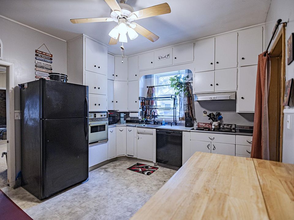 This is a home you must see! So much space for such a great value! Welcome to this inviting 5 bedroom, 1 bath home offering 2,880 square feet of living space. The main level features a large kitchen perfect for family gatherings, main floor laundry for convenience, a formal dining, spacious living room, and 3 comfortable bedrooms. Complete bathroom remodel and shiplap wall in the living room. Upstairs, you'll find the two additional oversized bedrooms-ideal for guests, hobbies, or a private retreat. The home offers plenty of space for both living and entertaining, with classic features and flexible room layouts. The exterior is vinyl sided with brickwork that adds charm and appeal to the home. Two stall detached garage, a large yard and play area tops it all off. If you are looking for room to grow and a price that reflects an opportunity to add value, then this one is worth a look!