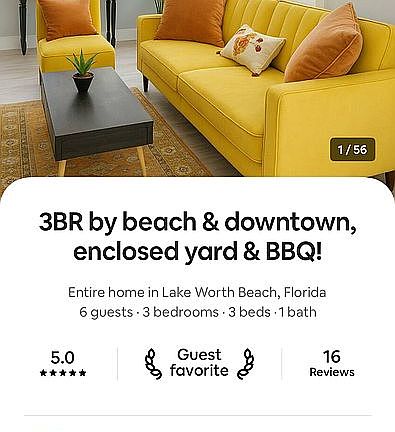 If you’ve ever considered getting in on the up and coming short term rental market in Lake Worth Beach, this is your chance. Let the most lucrative season of the year repay you instantly. This is a successful and currently operating short term rental with nearly 100% occupancy. Take a look at the airbnb earnings report and let the numbers speak for themselves. The 16 recent 5-star reviews attest to the current quality and condition of this home. This property recently appraised at $400,000.00 In February 2025, and has since been transformed into a passive income generating machine, equipped with all the upgrades necessary to run itself while you live or work anywhere in the world.