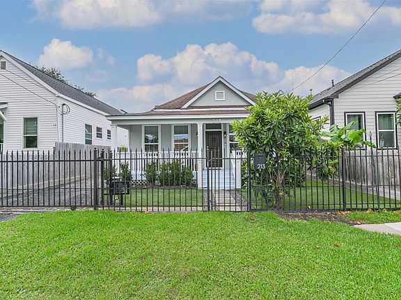 Beautifully remodeled single-story bungalow featuring 3 bedrooms and 3.5 bathrooms, ideally located just around the corner from the Metrorail, BBVA Stadium, Daikin Park and Buffalo Bayou Hike & Bike Trail. This home offers two expansive covered porches, each over 20 feet long, plus a private side entry from the Primary Ensuite, perfect for relaxing or entertaining in the fully fenced yard. Inside, the open-concept kitchen with a breakfast bar flows seamlessly into the dining and living areas, complemented by a convenient half bath nearby. Additional highlights include a walk-in pantry, utility room and a spacious Primary Ensuite with a walk-in closet. A perfect blend of modern comfort and classic charm in one of Houston's most vibrant neighborhoods.