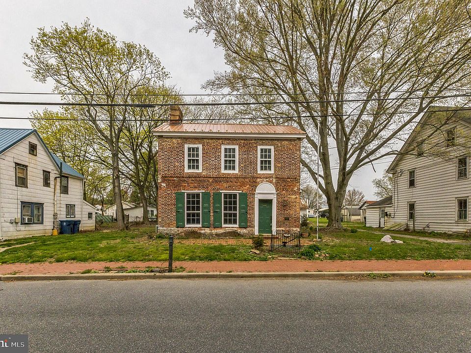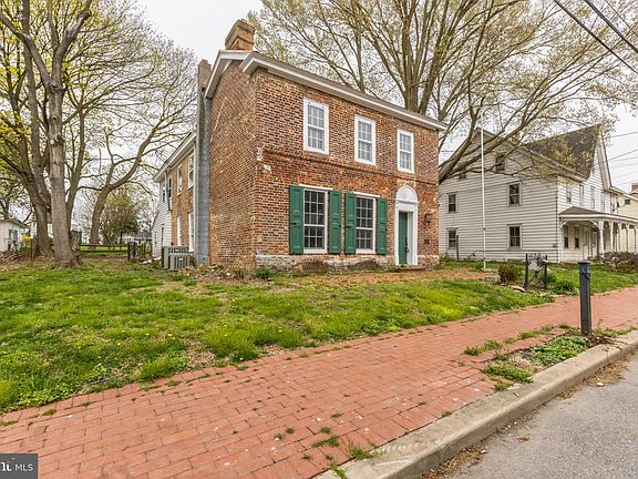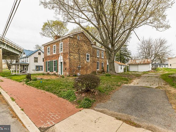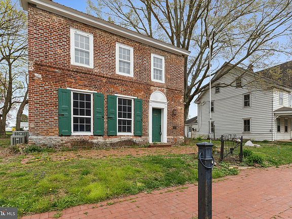 Welcome to Historic Saint Georges, DE! North side of the C&D Canal, located on a charming street, in the shadow of the Saint Georges Bridge. Walking distance to the Creamery over looking the canal, as well as nature preserves and walking trails that will peak your intrigue and provide lots to discover! The Robinson House, circa 1750’s, has been placed on the National Register of Historic Properties by the US Department of the Interior. This brick and wood frame structure is truly a time capsule of a bye gone era that used to take a different approach to quality of construction, choice of material, and attention to detail that is rarely seen in todays developed society. As you pull up with your horse and buggy, you will be able to tie off onto the hitching post that still remains to this day. Brick paver sidewalk leads to more brick on the slightly elevated front patio leading to main entrance. Across the threshold you will be greeted by a traditional foyer with access to the main living space and other rooms on the first floor. Living room with deep window sills, wrapped in fluted trim with rosette corners and capped off with a wood burning fire place and ornate mantel. Dining room with more detailed trim, chair railing and deep sill window openings. Family room off the dining area with cherry red painted trim and access to driveway side of the structure. Kitchen area is off the rear of the home and offers a blank canvas for one to create their ultimate food preparation and entertainment space. Mud room off the side of kitchen plays host to a full bathroom and laundry facilities, as well as possible pantry storage. Basement is accessed in this area, and has an opposite side bilco door access point. Up the steps to the second level, you will be greeted by a split that leads to a den/home office/nursery type space and then five other bedrooms of ample dimensions. The main bedroom and secondary bedrooms are each adorned with fireplaces and a wall of raised panels in the main space. Full bathroom with claw foot tub and wainscoting services this level. Two more bedrooms off the rear and then a third that can be accessed from the rear steps leading up from the kitchen. Walk up attic space is perfect for storage as well as currently houses one of the two zoned HVAC systems for the home. Main structure has received a brand new tin roof and significant amounts of structural framing and other carpentry repairs since current owner acquired the property. A two car detached garage is located on the right side of the property and another outbuilding is located along the boundary line on the left side. Easement for driveway that allows access between Main St. and Broad St. located on the southern border of the parcel allows for convenience during arrival and departure activities. Huge rear yard is fenced in and has a pond with water feature for ambiance. Excellent opportunity for the Historic Property Enthusiast to return this home to it’s grandeur, all while being the custodian for both the past and future!