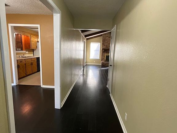 This 4-bedroom, 2-bath, 1,612 sq. ft. brick home is located just minutes from the Fort Johnson main gate. A large covered front porch welcomes you inside, where wood flooring runs throughout the main living areas and carpet adds comfort to the bedrooms. The living room features vaulted ceilings with wood beams and a floor-to-ceiling brick fireplace, with windows on either side providing natural light. The spacious kitchen includes an eat-in area, plenty of counter and cabinet space, and appliances such as a stove/oven, dishwasher, and refrigerator. A formal dining room with a ceiling fan offers additional dining space. The dedicated laundry room comes with washer and dryer hookups, a clothing hanger, and cabinet storage. The primary bedroom has carpet, a ceiling fan, and an ensuite bathroom with a large vanity for extra counter space, a tub/shower combo, and a large framed mirror. Three additional bedrooms, also with carpet and ceiling fans, share a secondary bathroom with a tub/shower combo, a framed mirror, and a spacious vanity. Outside, the huge fenced backyard features a patio and a stone table with benches. A 2-car garage completes this home, offering both storage and convenience. Pets Negotiable.