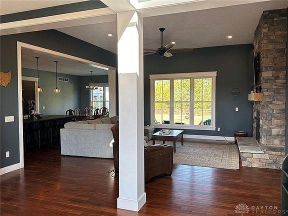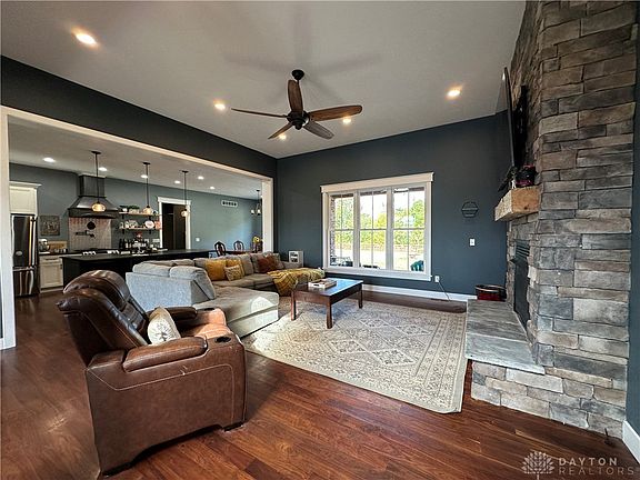 Welcome home to this beautiful custom built ranch with over 3800 sq ft of living space. Inviting front porch with stamped concrete that opens to the 20 ft ceiling open foyer. Hard wood floor throughout the great room, dining room and kitchen. Kitchen features stainless steal appliances, farm sink, beverage cooler and a walk in pantry. Great room has a fireplace and is open to the eat in kitchen with walkout to covered porch. Primary bedroom also has a walkout to the covered back porch as well as an en suite with a walk in shower, soaking tub, double vanity and walk in closet. Bonus room above garage is currently used as a bar/rec room but could be a 5th bedroom. Split floor plan with a primary suite on both ends. Over sized 2 car garage and a fenced in back yard. Sellers spared no expensive when constructing this custom home, you will not be dissapointed!