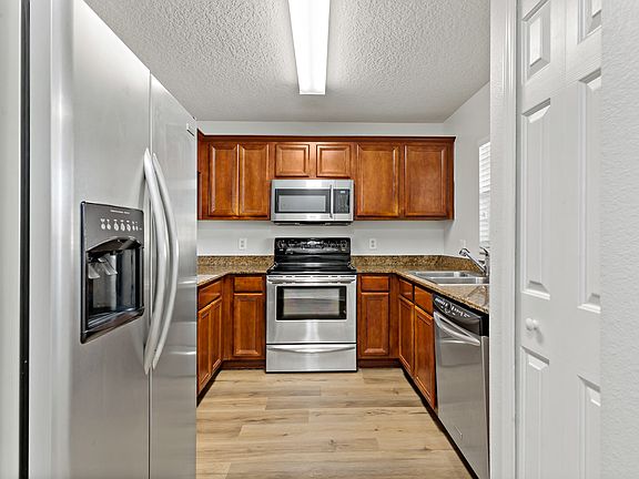 Hurry before this gorgeous 2BR/2BA Townhome with a den is gone. There is approximately 1560 sq' of living space. The moment you walk in you will be greeted with brand new Luxury vinyl water resistant flooring throughout the downstairs and a fresh coat of paint. The kitchen includes stone countertop, wood cabinets, Stainless steel/black appliances including refrigerator, range, microwave, dishwasher and disposal, as well as a pantry for all your cooking needs. The downstairs half bath also contains laundry closet for your convenience. You will notice the fixtures have been upgraded to add to the look of this wonderful home. Enjoy ceiling fans throughout, brand new carpet upstairs and ceramic tile in the wet areas upstairs. At the end of the day you can enjoy relax on your screen-in covered lanai for a little R&R. This home is conveniently located next to shopping, restaurants and many other local shops.