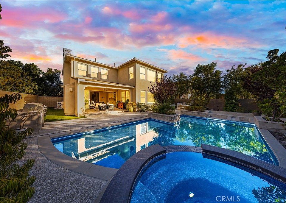 Welcome to this fabulous former model home in Beacon Park. This stunning 4-bedroom, 4.5-bath home with loft and next-gen downstairs suite sits proudly on a corner end lot, offering a remarkable blend of elegance and functionality. Spacious lot size with edgeless pool and Spa, you can enjoy amazing pool view at your own backyard. Boasting a wonderful floorplan and tons of upgrades, this model is really worthy the price. Step inside to discover posh hard wood flooring, complemented by fresh designer paint that adorns the walls. Soaring ceilings create an airy ambiance, while high quality windows covers add a touch of sophistication to every room. Revel in the glow of new LED lighting that illuminates the space with warmth and energy efficiency. The gourmet kitchen is a culinary haven, featuring beautiful white shaker cabinets, quartz countertops, and quartz backsplash. Top-of-the-line stainless steel appliances beckon aspiring chefs to create culinary masterpieces, while a large eat-at island offers convenience and style. There is another pre kitchen, you can enjoy cooking time. Entertain effortlessly in the Great Room, where oversized panel sliding doors seamlessly connect the indoor and outdoor spaces. Upstairs, a sizable bonus living room provides additional space for relaxation and entertainment. Retreat to the primary suite, boasting a huge walk-in closet which is high upgraded with motion sensor lights. The master bath has dual sinks, a custom soaking tub, and a step-in rain shower for ultimate relaxation. Step outside to the covered California Room with a fireplace, perfect for year-round gatherings. An edgeless pool and spa, The backyard oasis beckons with hardscaped bench seating around an elegant fire pit, a tranquil water feature, and a louvered pergola dining area complete with built in BBQ, you can enjoy the happy time with your family and friends. Conveniently located near top-rated Irvine Unified K-8 Beacon Park School and the new Portola High School, this home offers access to world-class amenities including parks, tennis courts, pools, and more. With proximity to Irvine Spectrum, toll roads, freeways, and Woodbury Town Center, every convenience is within reach. This turnkey residence is a rare find, offering luxury, convenience, and style in one impeccable package. Don't miss your chance to call this meticulously upgraded home. MUST SEE, WON'T LAST LONG!